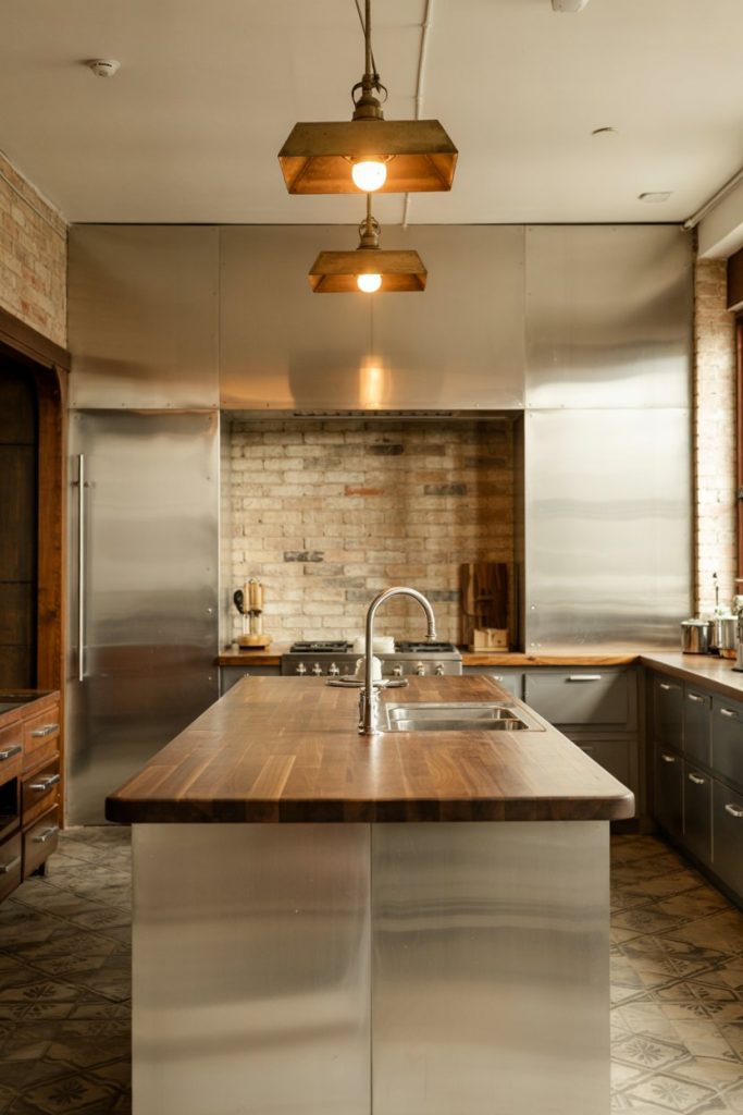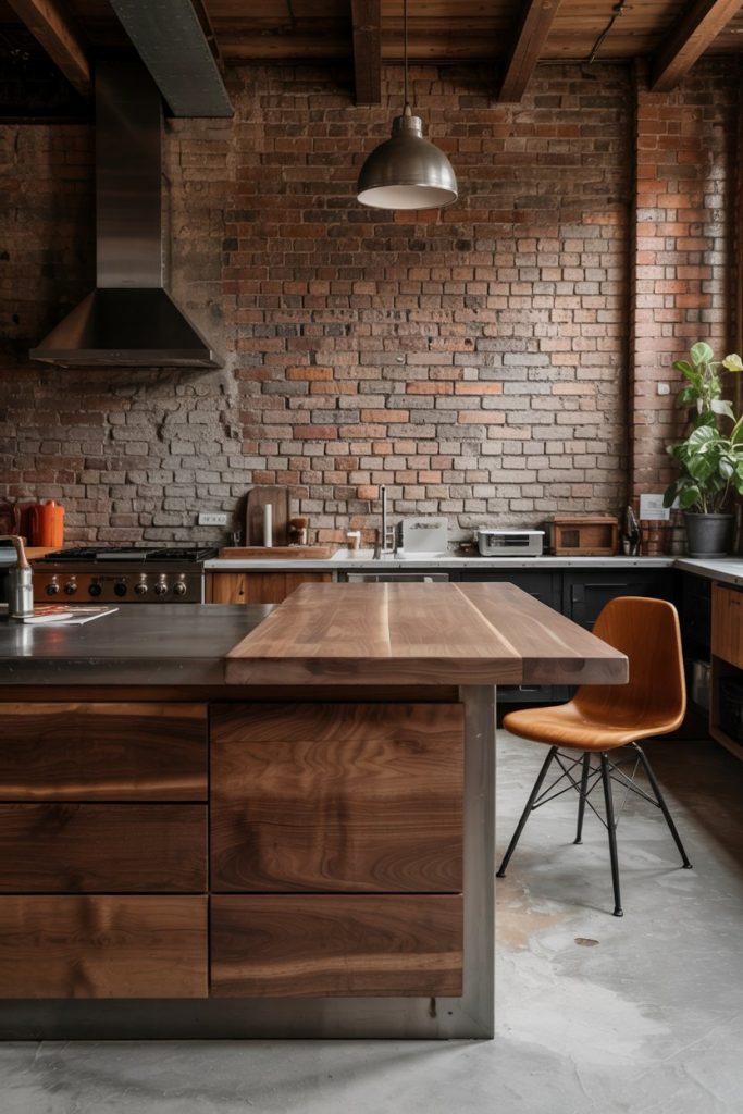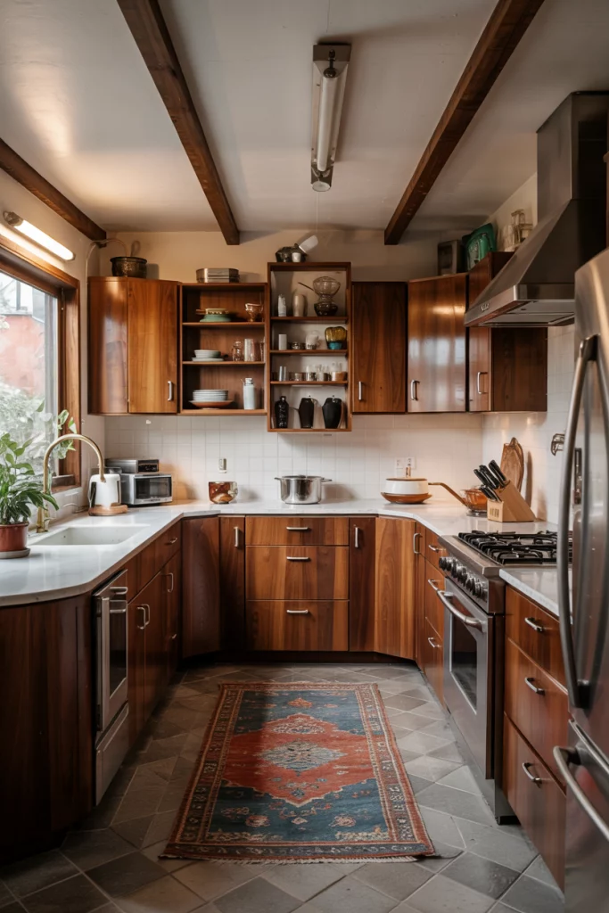 A rising look mixes midcentury walnut cabinets with industrial steel frames and exposed screws. Think Don Draper meets warehouse loft. I saw this in a Brooklyn condo where the owner kept the original brick and added teak drawers—it felt intentional, not mismatched.