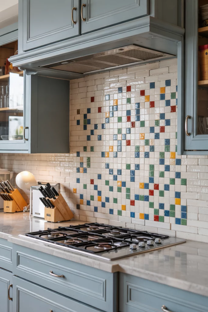 A playful trend rising fast is the Minecraft-inspired backsplash, built from square mosaic tiles arranged like digital pixels. In a downtown loft, I saw mint and charcoal tiles form a subtle “block” pattern that felt graphic without being childish. It’s a stylish bridge between nostalgia and modern design logic.