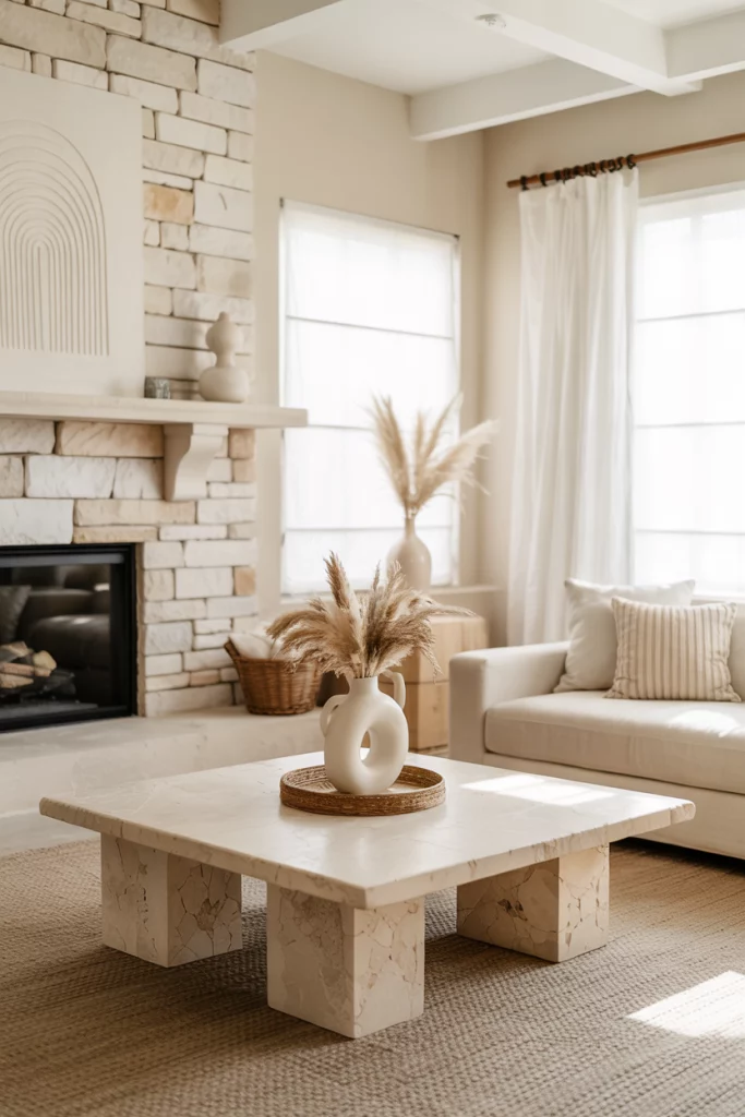 Integrating natural stone brings organic sophistication to your living space. A limestone fireplace or travertine coffee table pairs beautifully with decor in earth tones. This timeless element gives both modern and cozy appeal, balancing texture and luxury.