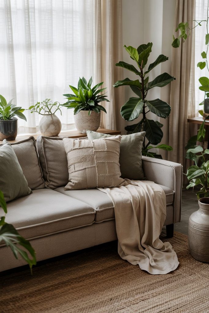 Incorporating green accents through foliage or accessories instantly refreshes your room. A leafy ficus or moss-hued pillow adds life while staying within neutral colors. Nature-inspired ideas bring vibrancy and a sense of serenity.