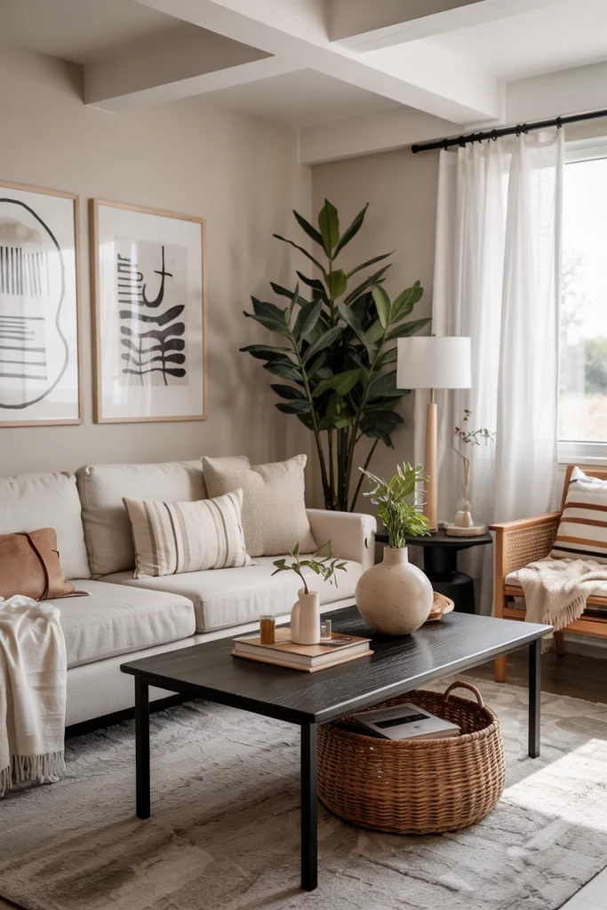 Neutral Living Room 2026 – 38 Modern Cozy Decor Ideas with Earthy Tones and Black Accents