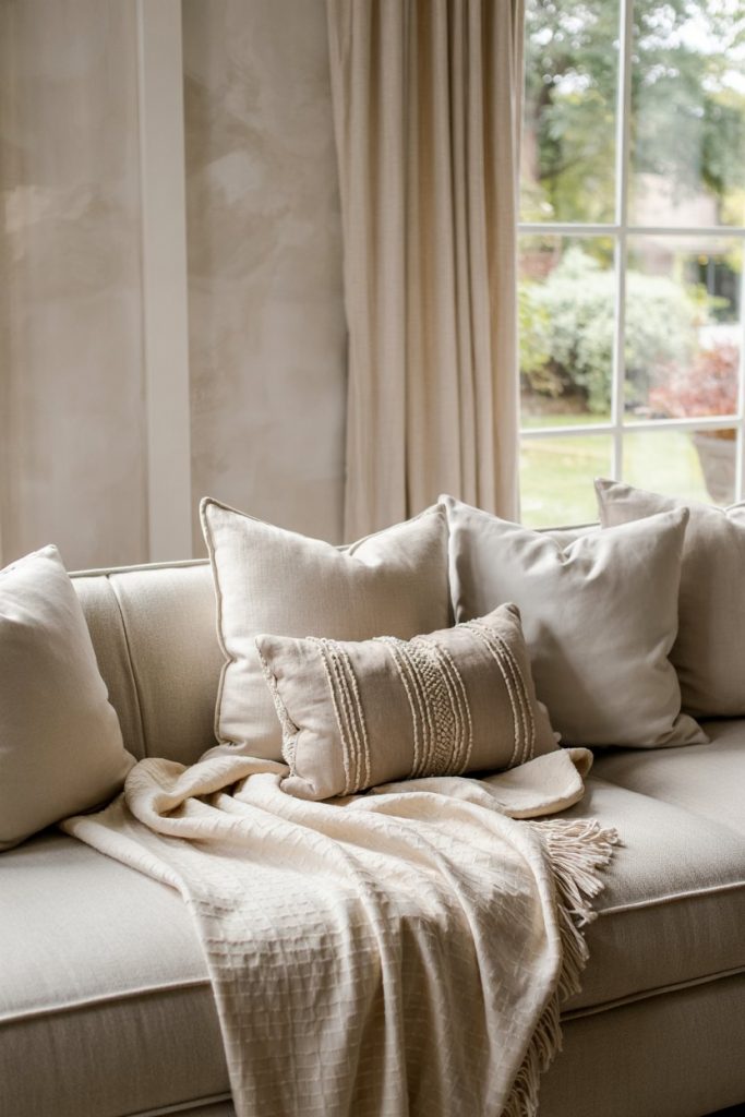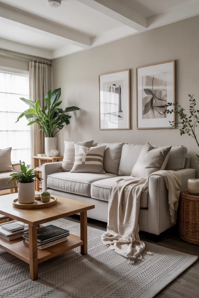 Grey and beige combinations—sometimes called “greige”—remain timeless in decor. This blend works with both cool and warm interiors, offering flexibility to add color later. Layered throws, tactile cushions, and gentle lighting ensure a cozy yet upscale atmosphere.
