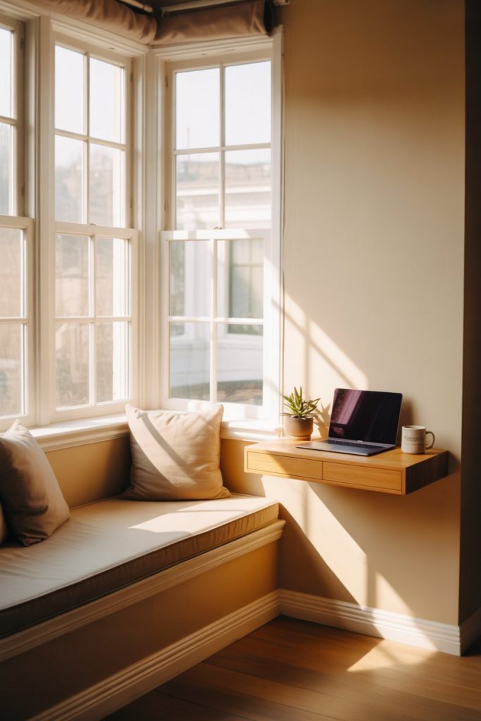 If your home has an alcove or bay window, consider transforming it into a multifunctional workspace with a built-in seat and a floating desk. Add cushions in neutral tones, a small side table for coffee, and a sleek wall-mounted desk that doesn’t obstruct the view. This is a favorite for professional women working from home who want a space that feels both productive and restful.