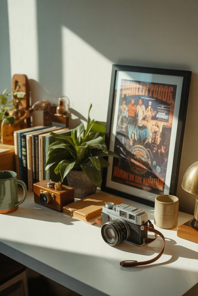 1. Softly Lit Workspace with Warm Tones and Personal Accents