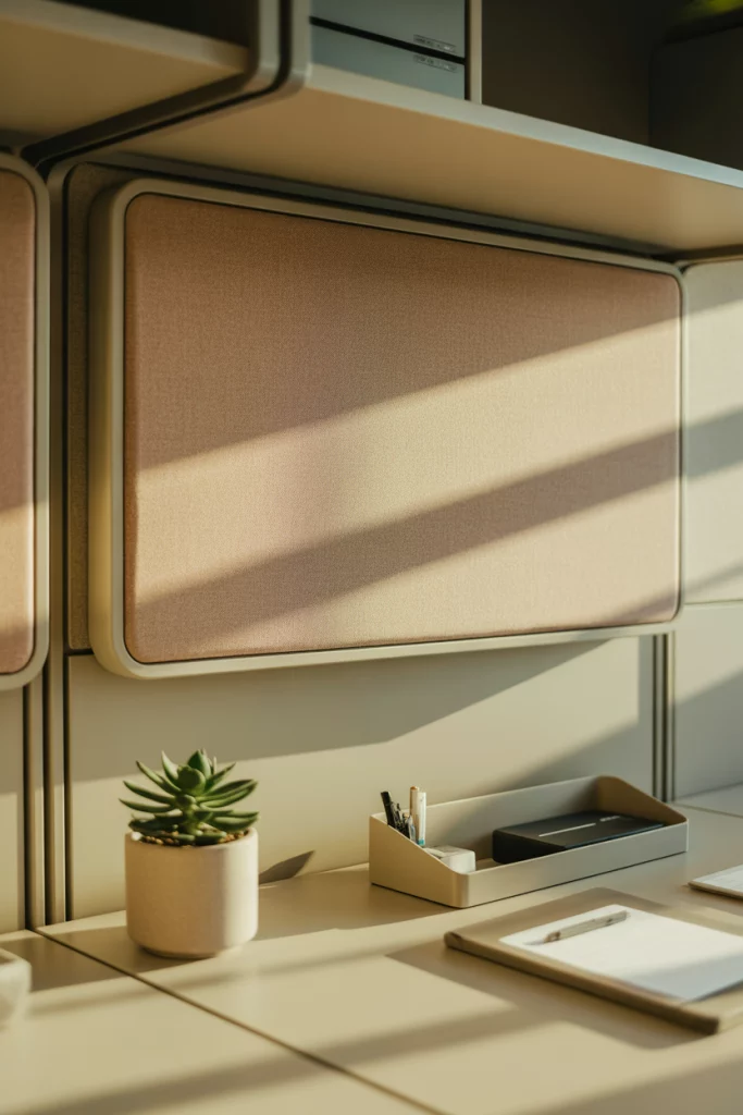 Transforming a cubicle from bland to personal doesn’t require permission to paint. Start with fabric-covered bulletin boards in warm neutrals or muted greens that you can pin directly to existing wall panels. Add a small organizer caddy, swap out the standard mouse pad for something textured, and introduce a desktop succulent. These small changes make a significant impact without violating workplace policies or requiring tools.