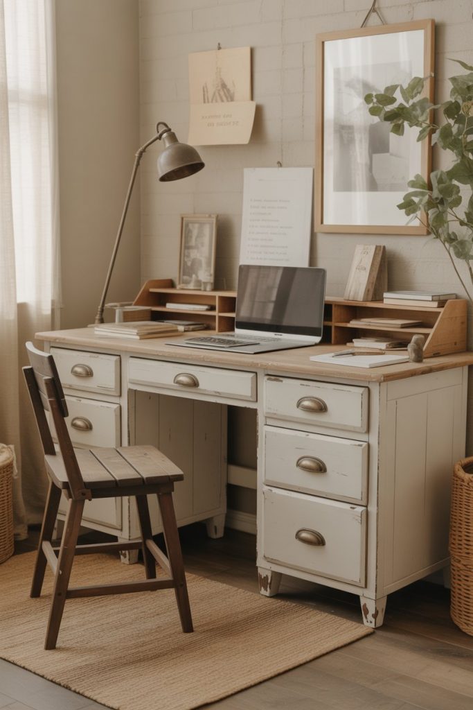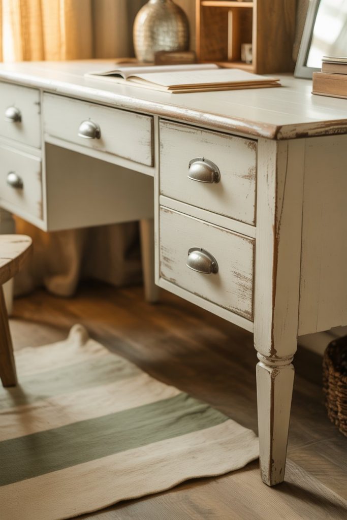 13. Farmhouse Desk with Distressed Finish