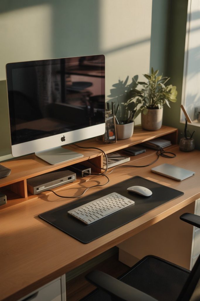 Where this desk style really excels is in professional home offices where clients might visit via video chat—the polished appearance signals competence and attention to detail. Common mistakes include routing cables too tightly, which can damage cords over time, or failing to leave enough slack for adjusting monitor positions. When setting up, run cables loosely and use velcro ties rather than zip ties, which are harder to adjust as your technology needs change. This flexibility is particularly valuable given how frequently we upgrade phones, tablets, and other devices.
