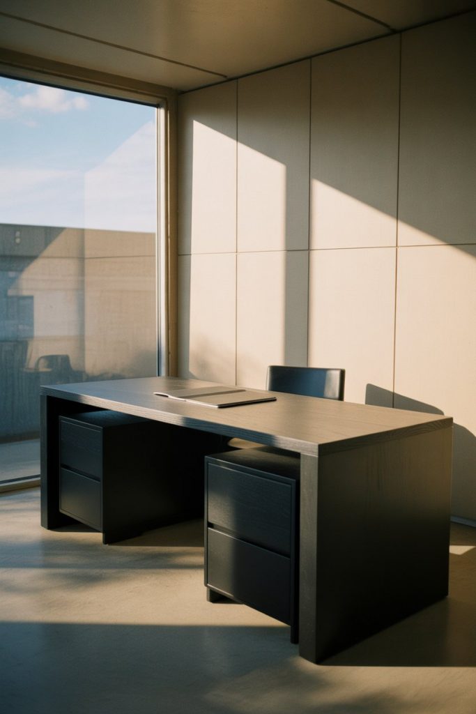 19. Sleek Black Desk for Dramatic Contrast