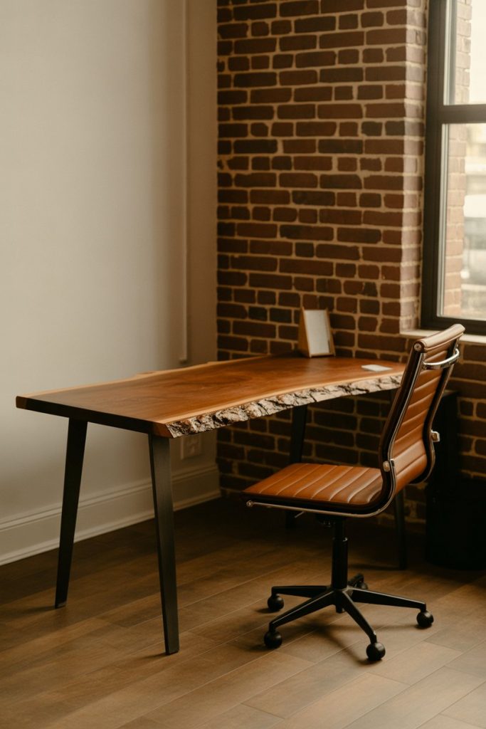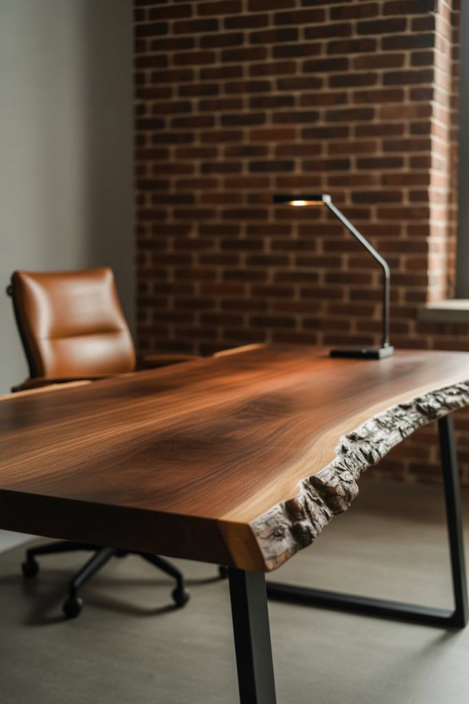 Many homeowners pair these desks with mid-century or industrial-style chairs to balance the rustic wood with sleeker elements. A common mistake is choosing a live edge that’s too thick or heavy for the room—if your office is compact, look for slimmer profiles (around 1.5 to 2 inches thick) that still offer the natural aesthetic without overwhelming the space. These desks also require occasional oiling to maintain their finish and prevent cracking over time.