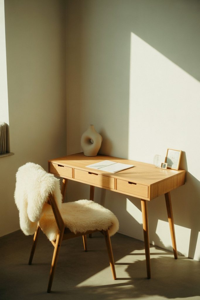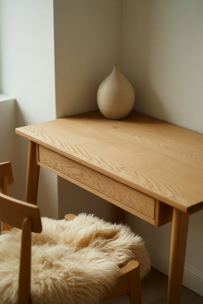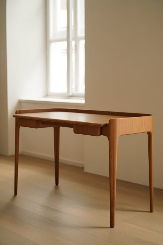 Clean lines, light woods, and functional simplicity define the Scandinavian approach to office desk design, making it a perennial favorite for Americans drawn to calm, uncluttered spaces. These desks typically feature oak or birch in natural or white-washed finishes, with slender tapered legs that create visual lightness even in compact rooms. The modern Scandinavian desk prioritizes what you need and eliminates what you don’t, often including just one or two slim drawers.