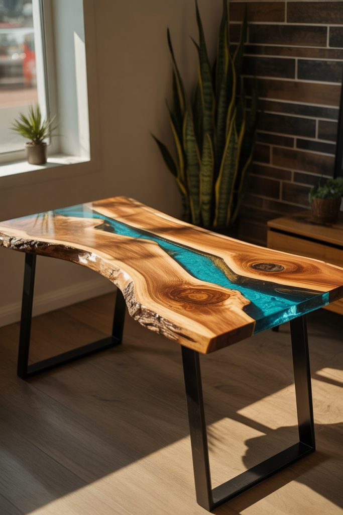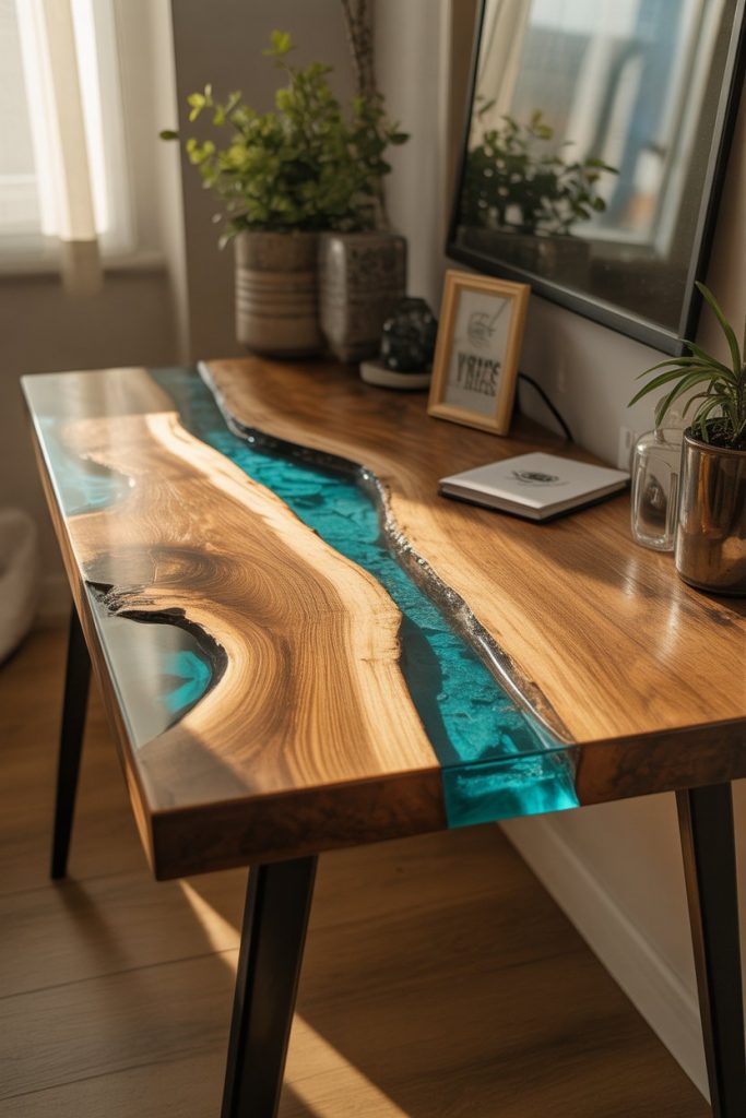 These statement desks work best in dedicated offices or creative studios where they can be appreciated as the focal point they deserve to be. Local woodworkers and artisan furniture makers across the country have embraced this trend, with particularly strong communities in the Pacific Northwest, Colorado, and North Carolina. Prices vary widely depending on wood species and complexity—expect to invest $1,200 to $5,000 or more for quality pieces. The resin surface is durable and easy to clean, but avoid placing extremely hot items directly on it, as heat can cause cloudiness or damage to the glossy finish over time.