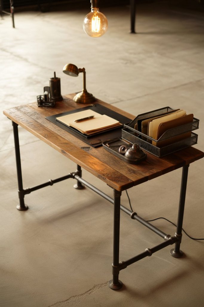 5. Industrial Pipe Desk with Reclaimed Wood