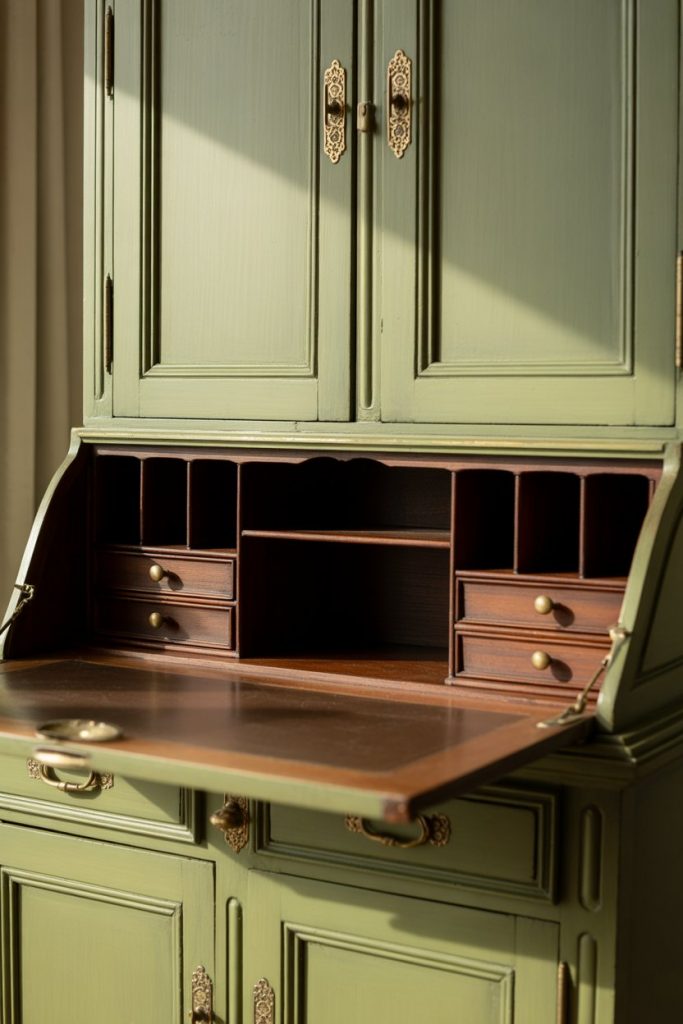 The charm of a vintage secretary desk lies in its dual nature—it functions as both a display cabinet and a compact workspace that tucks away when not in use. These pieces, often found in antique stores or estate sales across New England and the South, feature a hinged writing surface that folds down to reveal cubbies, small drawers, and letter slots perfect for organization. The exterior might showcase painted finishes, carved details, or beautiful wood veneers that add instant character to any room.