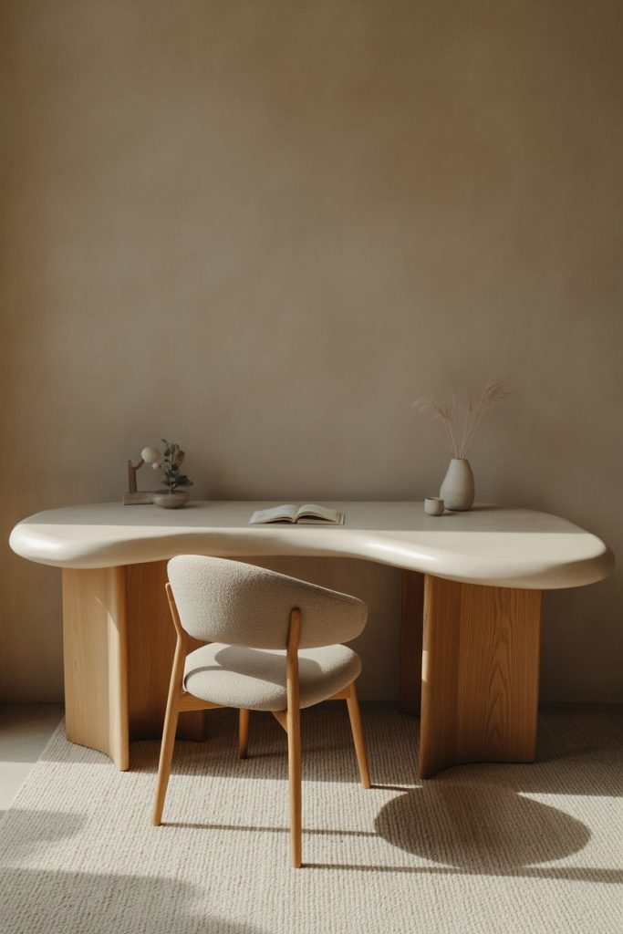 Curved desks work particularly well in open-plan homes where the office area flows into living spaces—the softer lines help the workspace feel less corporate and more integrated with the rest of the home. They’re also safer in households with active children, eliminating the sharp corners that can cause injuries. Where this style truly shines is in smaller rooms where traditional rectangular desks can feel boxy and confining; the curves create a sense of movement and spaciousness that straight edges simply can’t achieve.