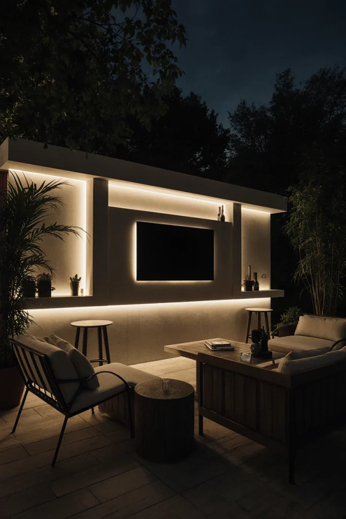 Imagine the zone when TV takes over this space. That’s a fun, enjoyable hub of pure entertainment! Add mixed design, durable, weather-approved materials with cushioned seats-be the model future home bar for sports lovers. And there’s a thought to it being almost a lounge area catered to long evenings at peace.