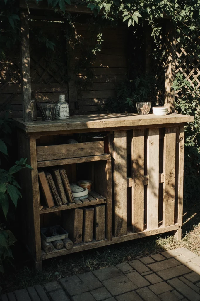 A DIY pallet bar fits the happy hand project to find the sweet delight of heel decoration in tight spaces. Its hard palette creates an intimacy and simplicity while keeping with manners. Therefore, this idea is supported specifically in small yards where space counts to the very last inch for the homeowners to personalize finishes or add a wee bit of fun with a simple shelf or shelf style without being stirred about overspill.