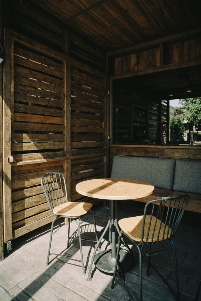 The cozy ambiance created by a bistro of its own in nature is right there with the cafe-style seating around the inviting pallet table. The best table and tavern combo styled with foreign feels complete in the backyard corner, mimicking the appearance of an alley cafe—really rare and objective, starting with the mad clamor of fresh, roasting coffee and winding up with light cocktails during the softest, dreamiest hours of the evening!