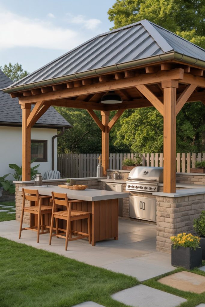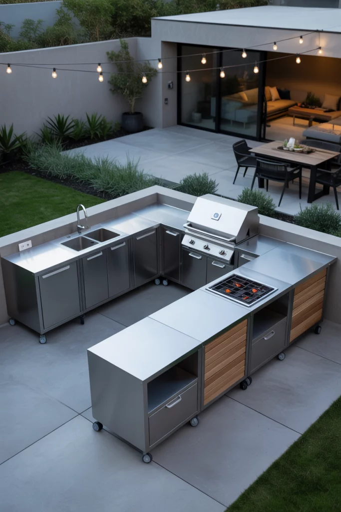 In a small backyard, a compact cooking setup with fold-down counters or vertical storage makes the area more functional. Many city designers emphasize clever spacing to avoid clutter. When I lived in a townhouse, a small corner kitchen made outdoor dining feel special, and friends were always impressed by how efficient the space felt.