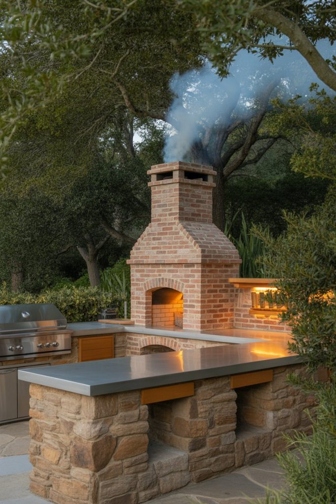 A wood-fired kitchen built with brick offers durability and timeless charm. It fits both modern and rustic homes, and many homeowners love using it for pizzas, slow-roasted meats, and summer dinners. Brick retains heat well, making cooking efficient even in cooler weather. I’ve seen families gather around a brick oven, creating weekend rituals that feel both nostalgic and practical.