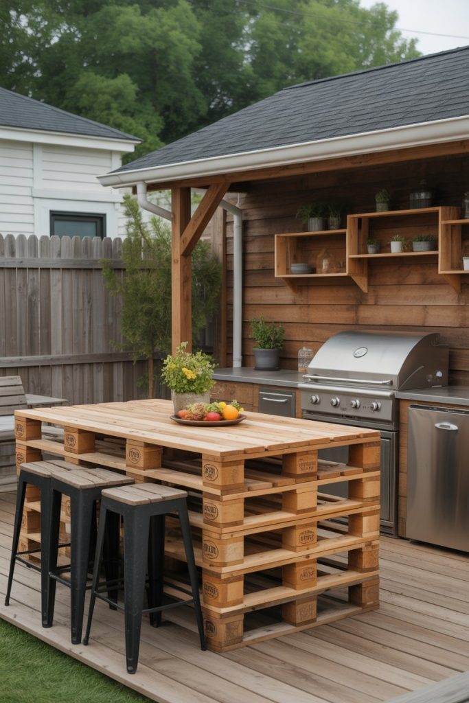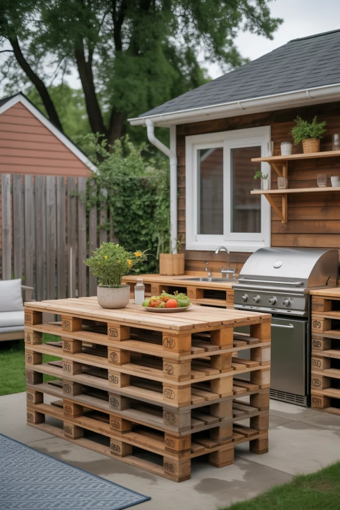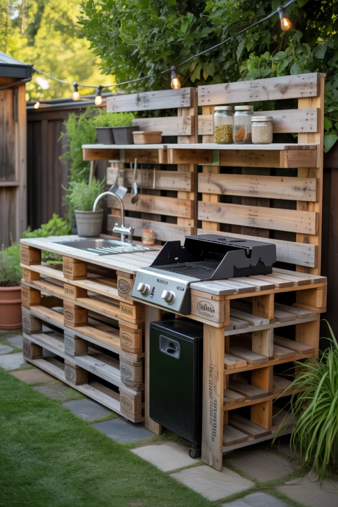 3. DIY Pallet Outdoor Kitchen on a Budget