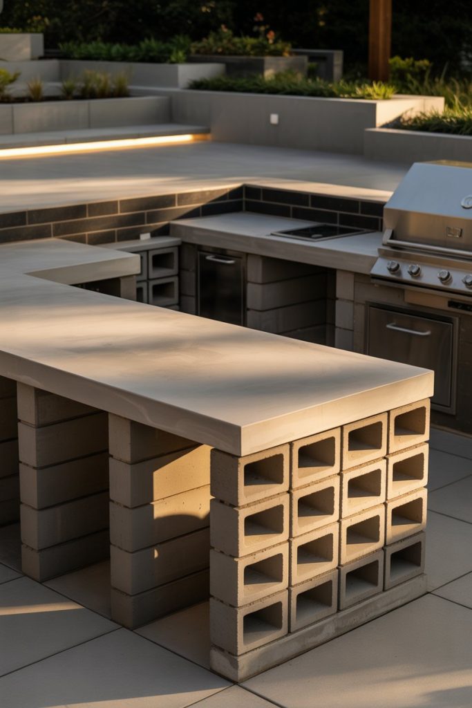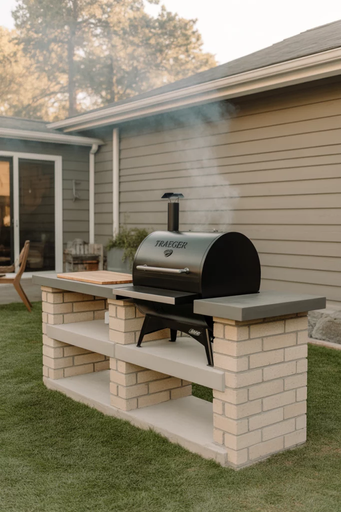 A grill station cinder block setup combined with a Traeger, Green Egg, or Traeger and Blackstone combo becomes a powerful cooking zone. Cinder blocks offer incredible durability, letting homeowners design custom shapes without overspending. My cousin built one last year and swears it became the most admired part of his backyard gatherings.