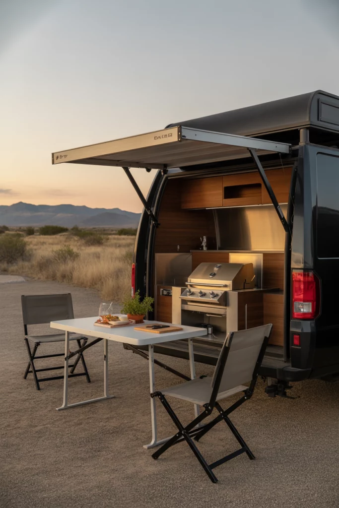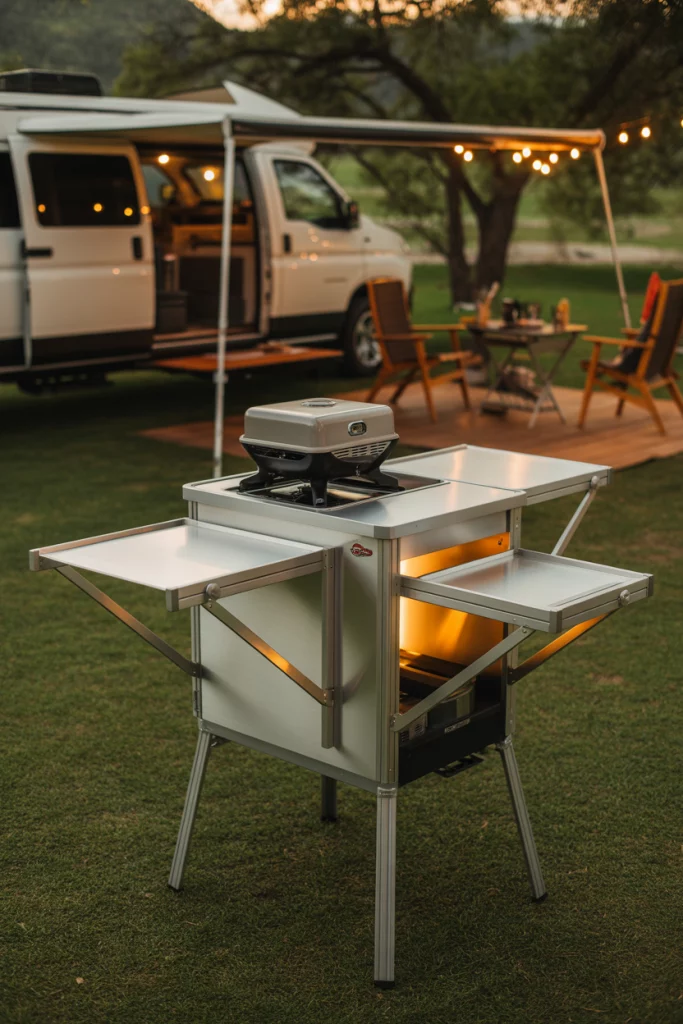 An RV-friendly outdoor kitchen is perfect for travelers who want freedom and comfort. Fold-out tables, portable grills, and lightweight materials make cooking easier on long trips. Friends who traveled across Arizona said their outdoor RV kitchen helped them enjoy sunset dinners without heating the interior or sacrificing space.