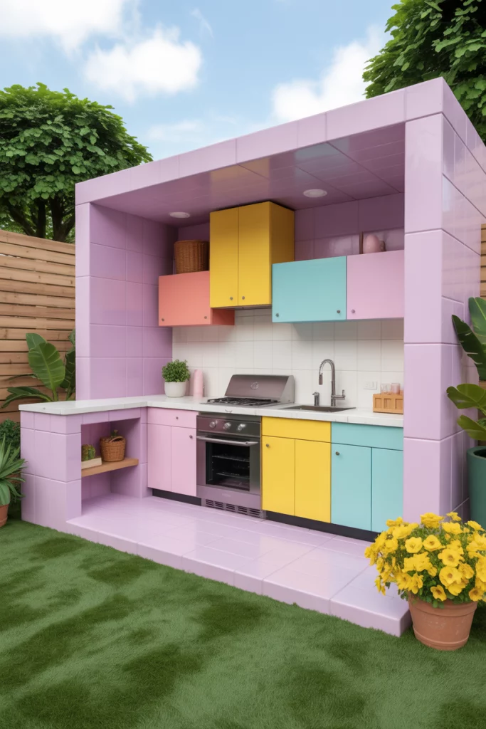 Fans of ACNH and Bloxburg enjoy creating playful outdoor kitchens with soft pastels, round shapes, and charming décor. This idea brings game-inspired creativity into real life. I once visited a homeowner who recreated their favorite in-game island design, and guests couldn’t stop smiling at the cheerful, nostalgic atmosphere.