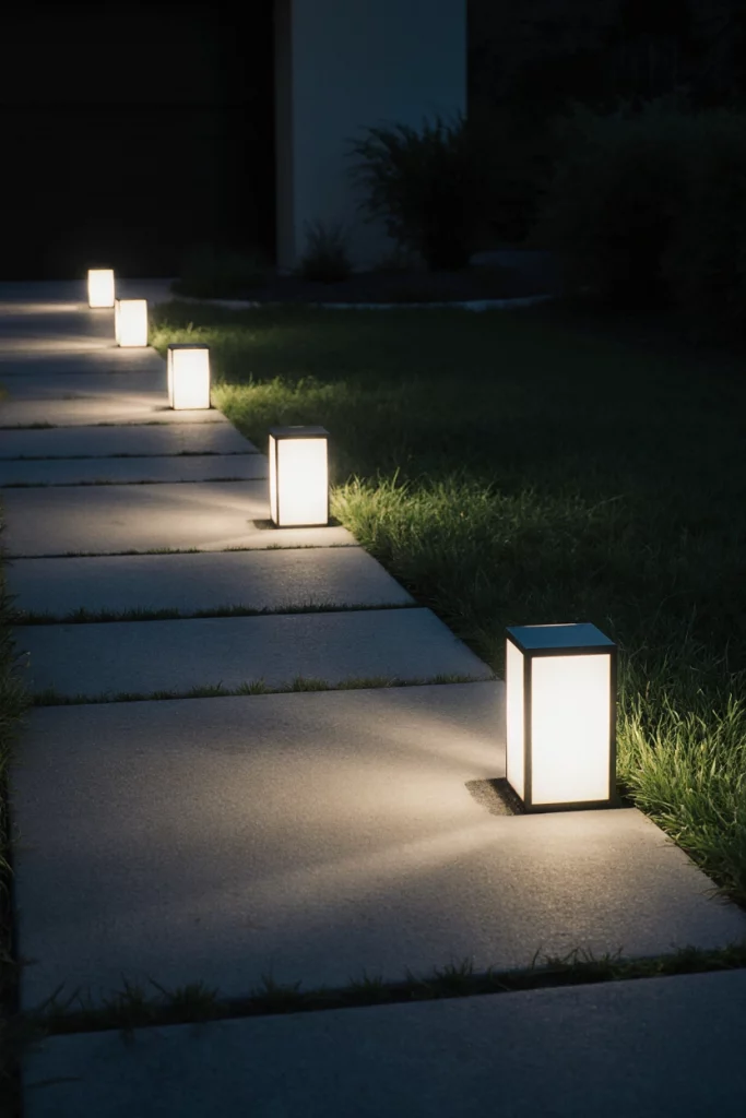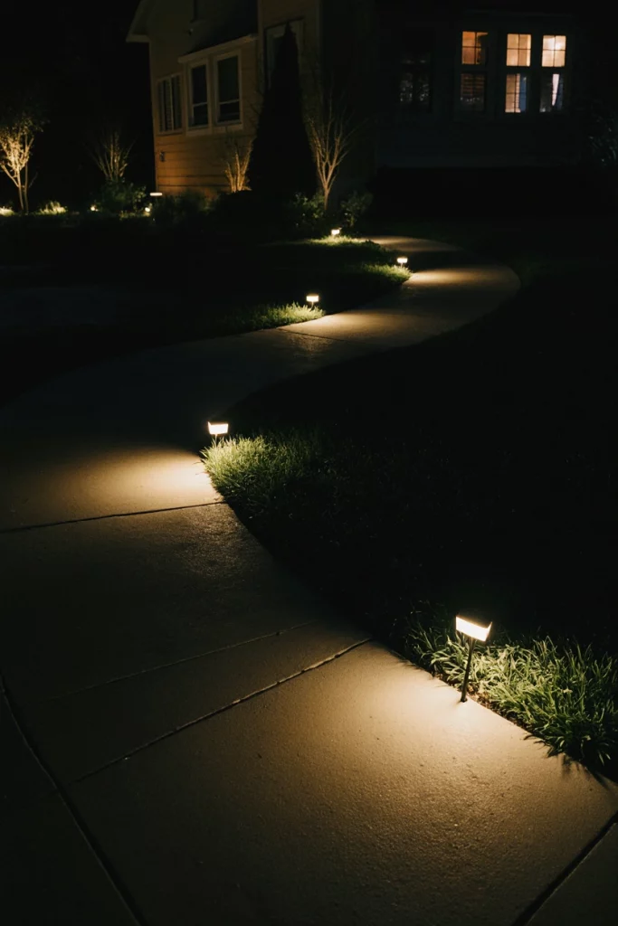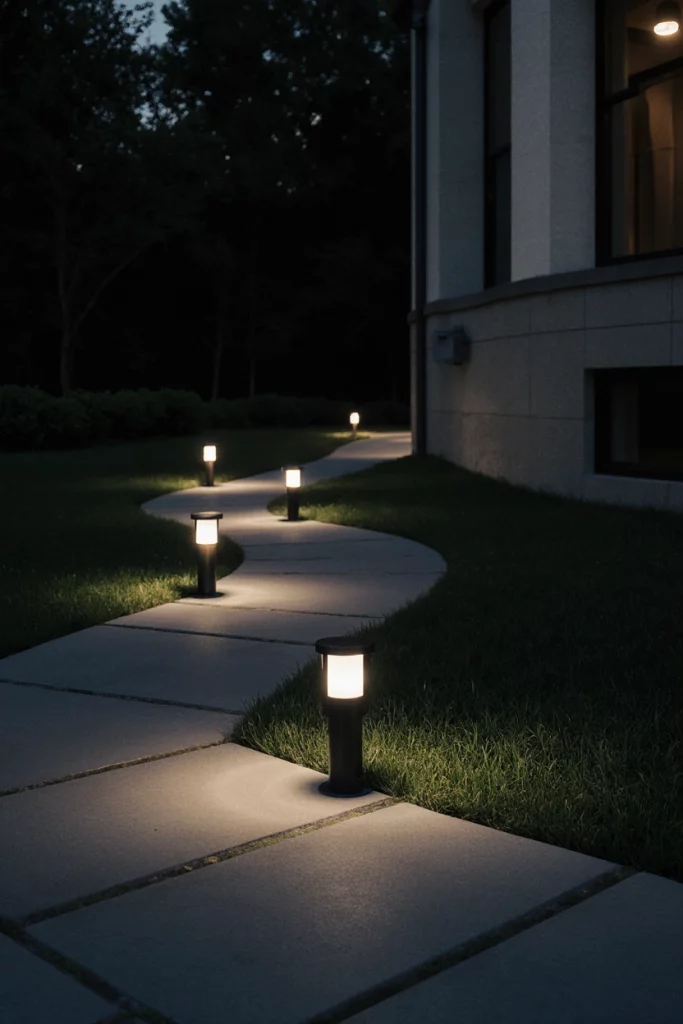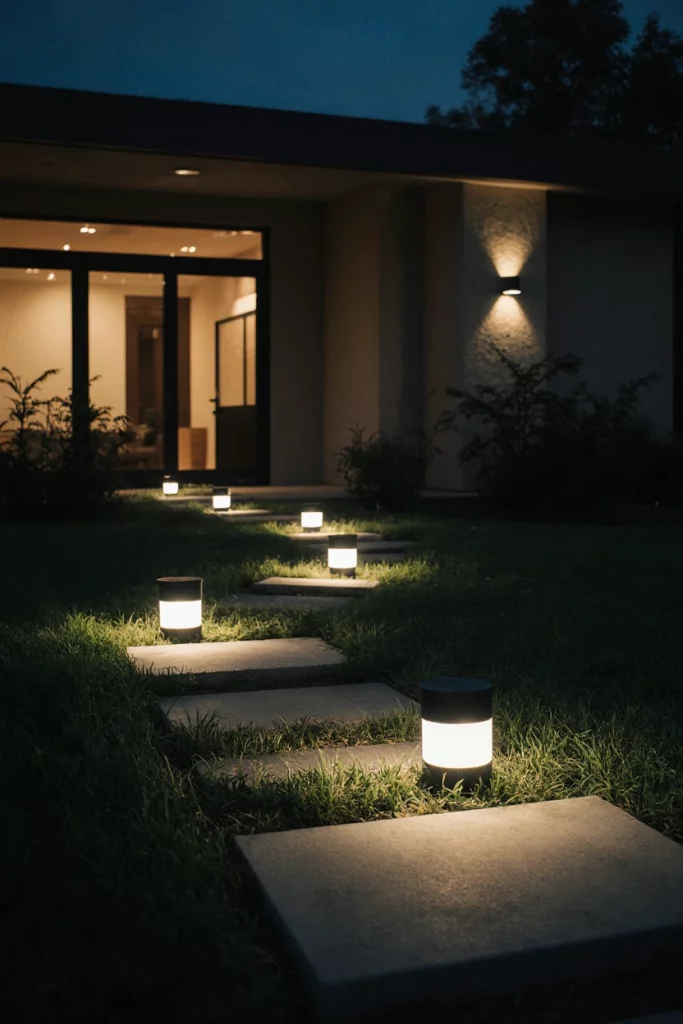 Creating a welcoming house entrance starts with well-planned pathway lighting, especially for front-of-house areas and front yards that feel too dark at night. Many homeowners add small solar stakes for an easy DIY upgrade that brings a soft, cozy look while keeping things modern. This idea works beautifully in backyards too, guiding guests toward a patio, garden, or side gate in a subtle yet functional way, similar to solutions often recommended by designers at Remodelista and Houzz.