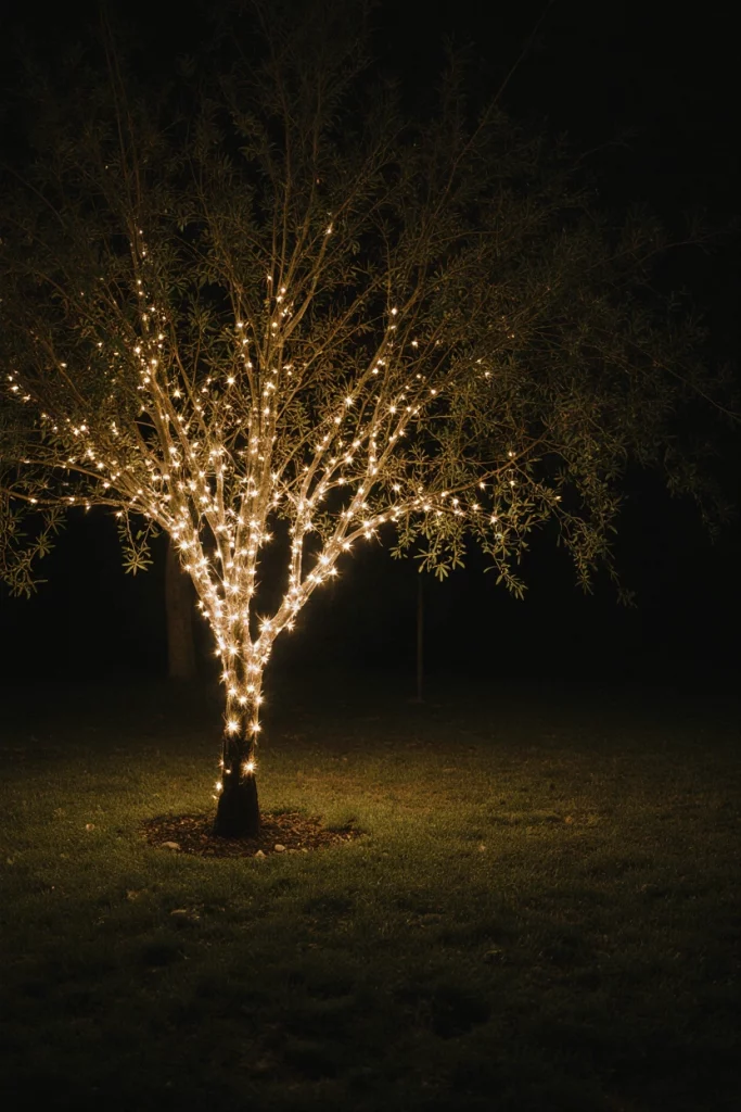 Wrapping fairy lights around tree trunks gives backyards or front yards a magical atmosphere that feels cozy yet modern. Homeowners turn to this idea for holiday moments like Christmas, Halloween, or Diwali, but it also works beautifully year-round. Experts from garden blogs often reference this method as one of the easiest ways to add instant charm outdoors.