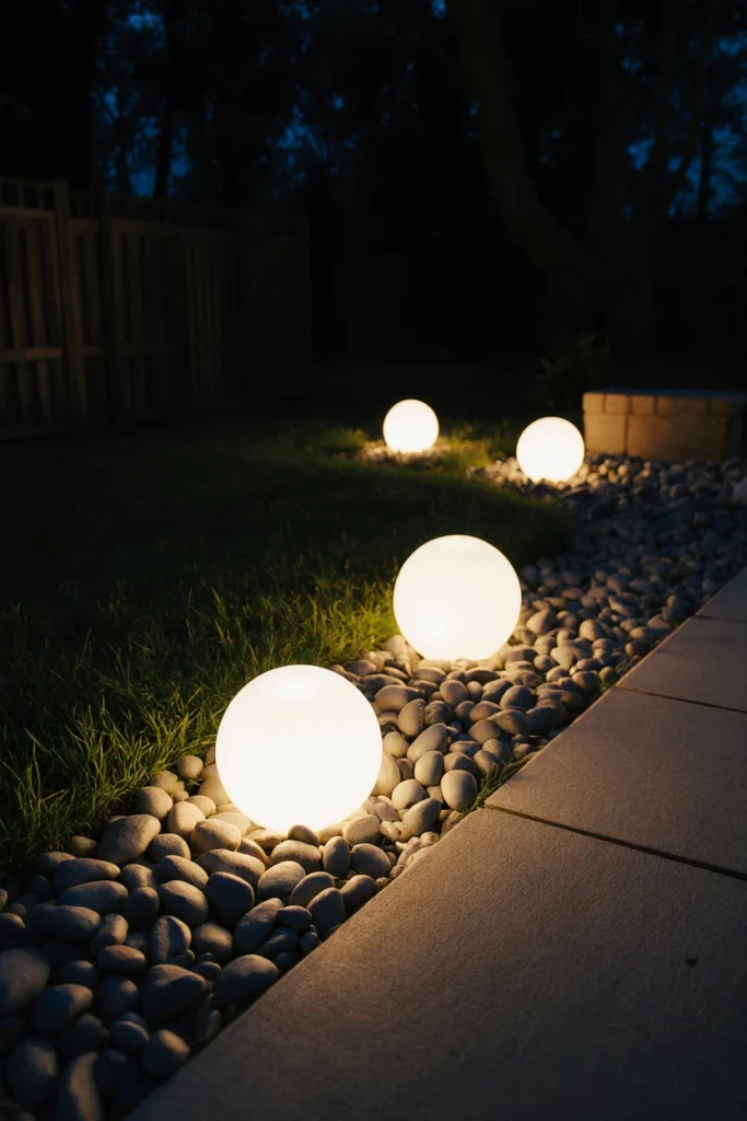 For a unique twist, pebble-shaped solar lights blend seamlessly into garden beds or backyard patio edges. Their soft, diffused glow feels very modern, offering a sculptural lighting effect designers love. They work best where subtlety is key—like alongside stepping stones or around a small pond. Many homeowners enjoy them as a zero-maintenance alternative to wired accents.