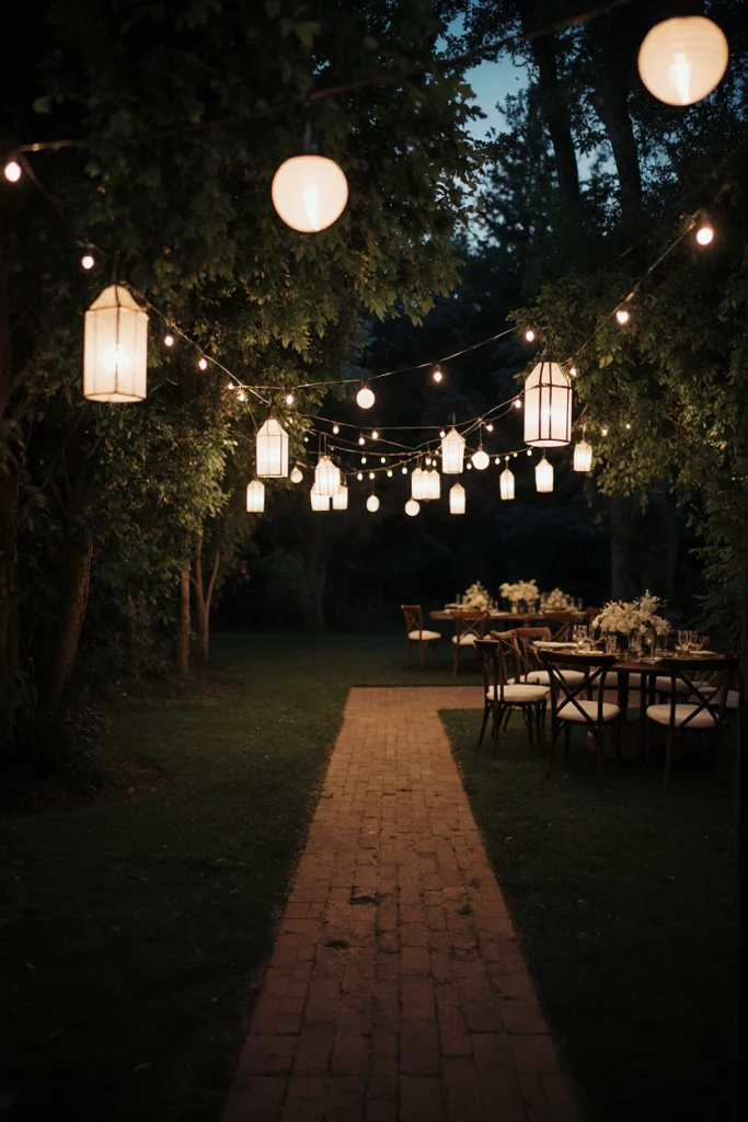 Outdoor weddings often rely on layered lighting to make backyards or rented spaces feel magical. From unique chandeliers in trees to modern LED uplights, this style creates an elegant path for guests while maintaining a warm atmosphere. Many couples use DIY lighting to personalize their setup, especially when celebrating at home. Designers often mention that even simple lanterns can elevate a garden into a soft, romantic backdrop.