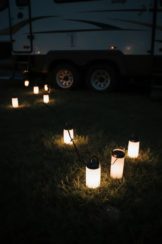 Travel lovers often enhance their RV camping area with portable LEDs, solar lanterns, or creative strip lights. This approach creates a cozy nighttime environment, especially in backyards or forest camps where you want soft illumination without disturbing nature. It’s a favorite among van-life bloggers who appreciate multifunctional lighting that packs small, looks modern, and adds practical visibility without wiring.