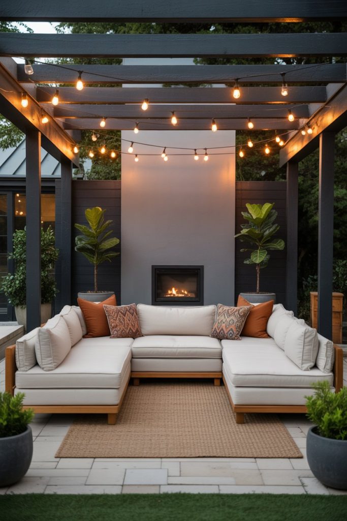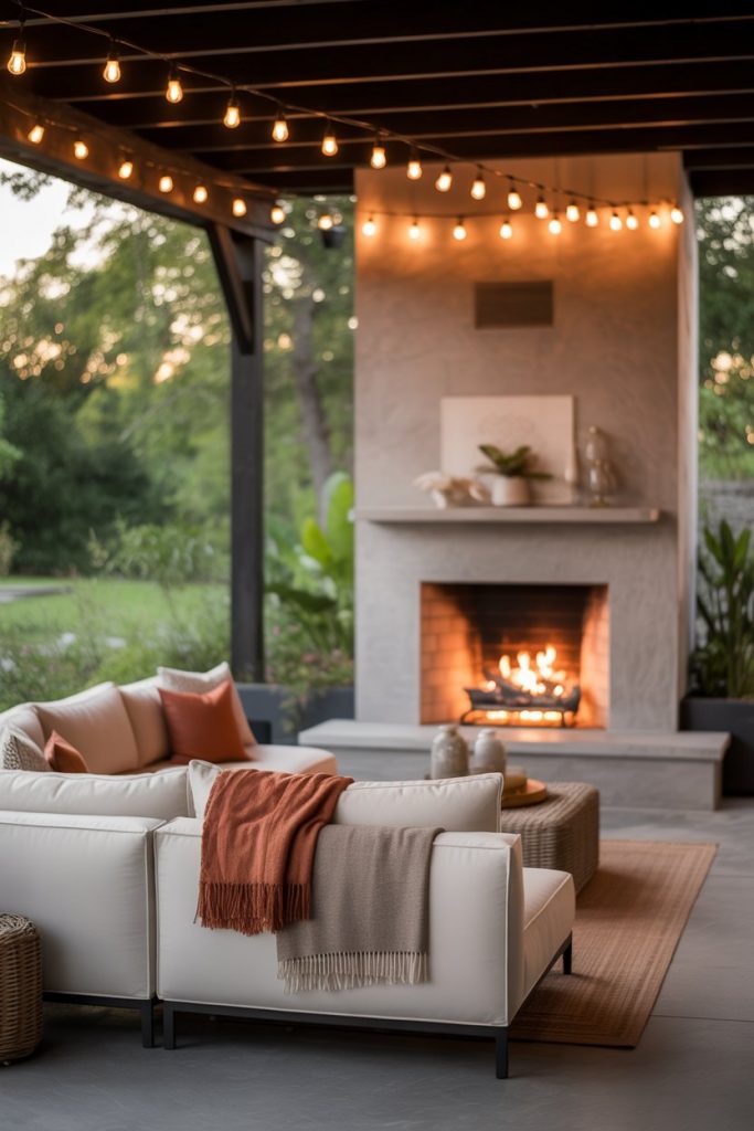 A covered patio is the ultimate blend of indoor comfort and outdoor charm. By adding layered textiles, string lights, and perhaps a fireplace, you create a year-round lounge space. This works especially well for tiny patios or apartment balconies, where a simple roof structure or pergola transforms the entire feel. Designers like Bobby Berk highlight how covered areas provide flexibility in climates with unpredictable weather.