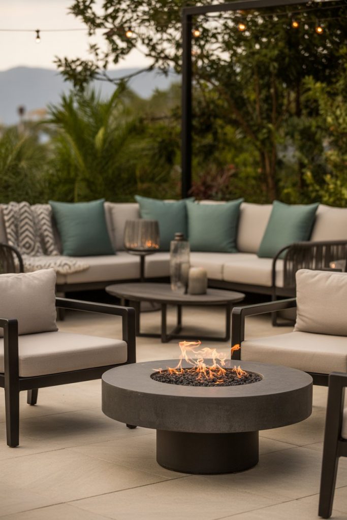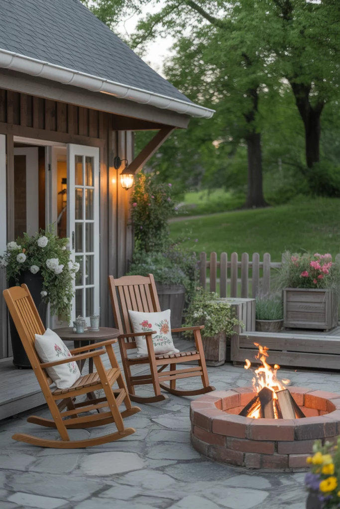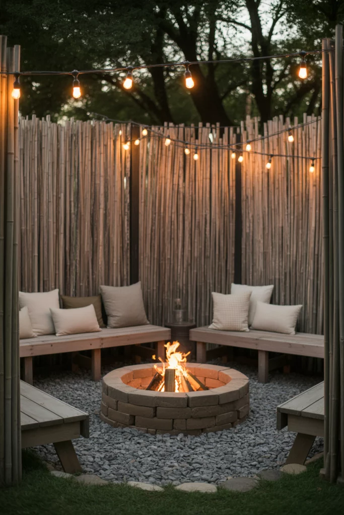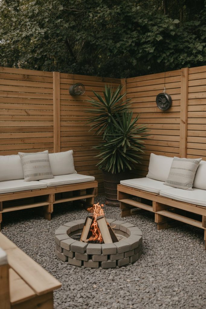 A fire pit remains a timeless favorite, but the trend now leans toward simple, DIY-friendly designs. From circular gravel bases to built-in seating, this is one of the best outdoor patio ideas small spaces. Add privacy panels or greenery for a cozy vibe. According to Houzz, these spaces encourage gatherings that feel casual and warm without being expensive to pull off.