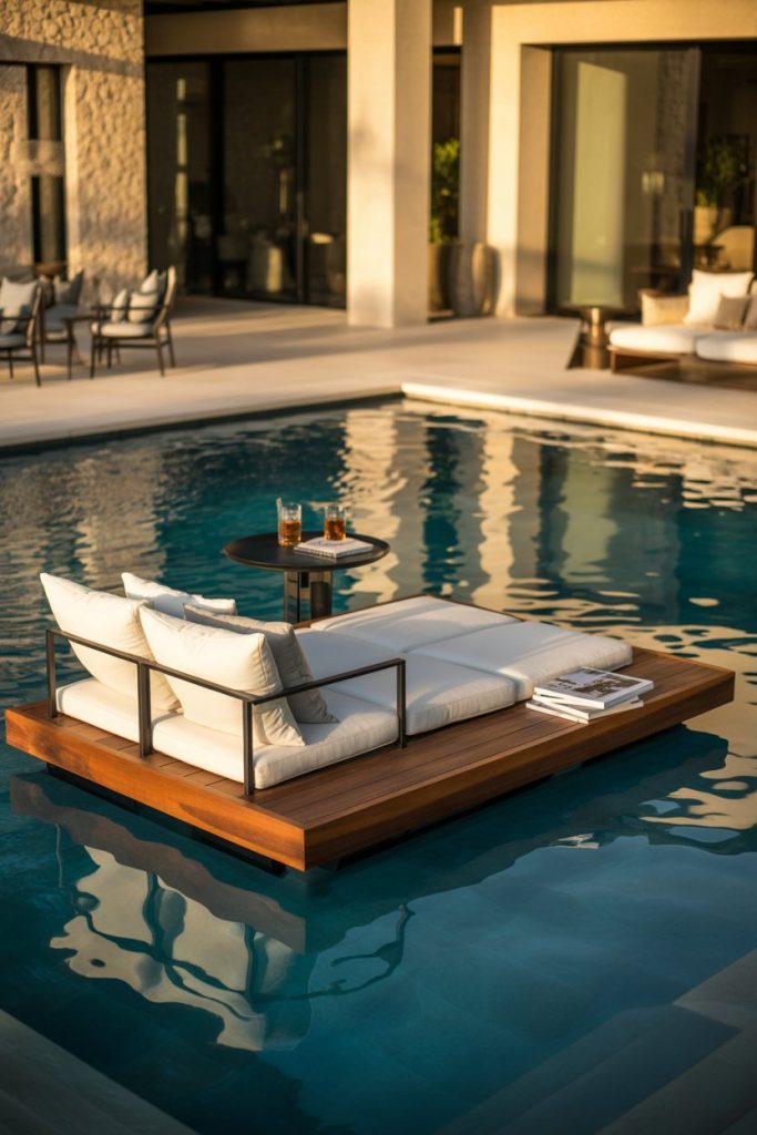 Integrating a pool with a lounge “island” is a rising 2026 trend for large outdoor areas. Floating decks or platforms near the water create intimate cozy retreats. Though not cheap, this style elevates resort-inspired living at home. Elle Décor often features this design as the future of backyard luxury.