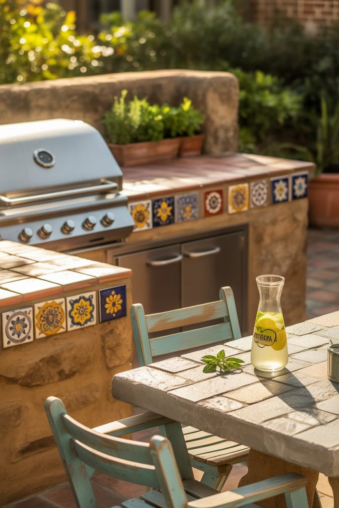 Bringing the kitchen outdoors is no longer just for high-end homes. In 2026, backyards embrace cooking zones with rustic stone counters, built-in grills, and pizza ovens. Even renter friendly spaces can include modular or mobile cooking stations. A touch of Spanish style tile brings personality while keeping it functional. As Apartment Therapy notes, outdoor kitchens are becoming more accessible and cheap modular units make them practical for more households.