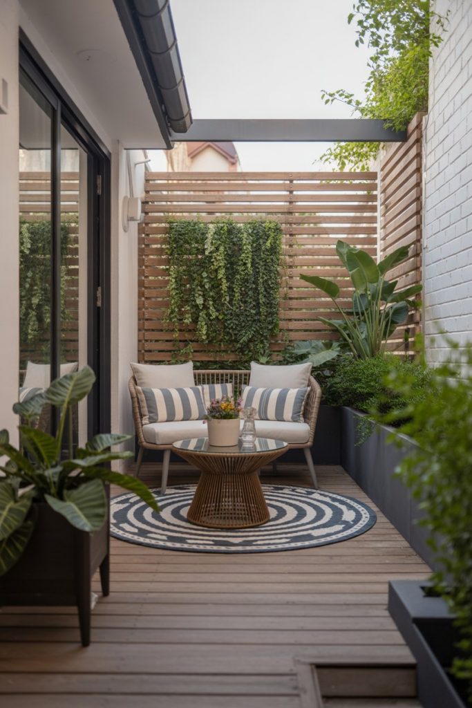 For those with small spaces modern patios or apartment balconies, privacy panels are a lifesaver. In 2026, expect modular panels made of wood slats, greenery walls, or even woven materials. They’re cheap and often renter friendly, offering both style and separation. They also allow creative decorating—hang plants, lights, or art to customize the panels. As seen on Better Homes & Gardens, panels are no longer just functional but integral to design.