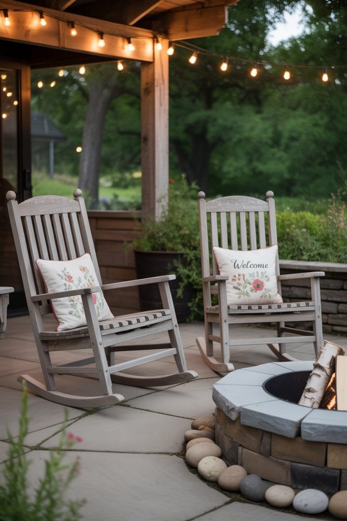 The charm of country style patios is their inviting cozy character. Think wood benches, rocking chairs, and floral accents. This is one of the most renter friendly outdoor patio ideas because the furniture can be easily moved. It’s a great fit for small spaces with fire pit or porches in need of warmth. Influencers like Joanna Gaines emphasize layering textiles and vintage finds to capture this effortless countryside mood.