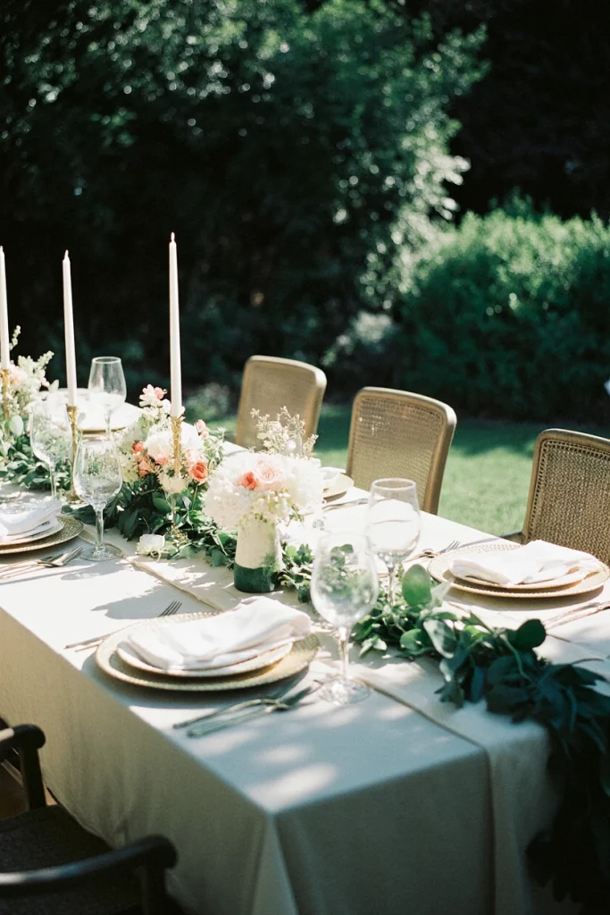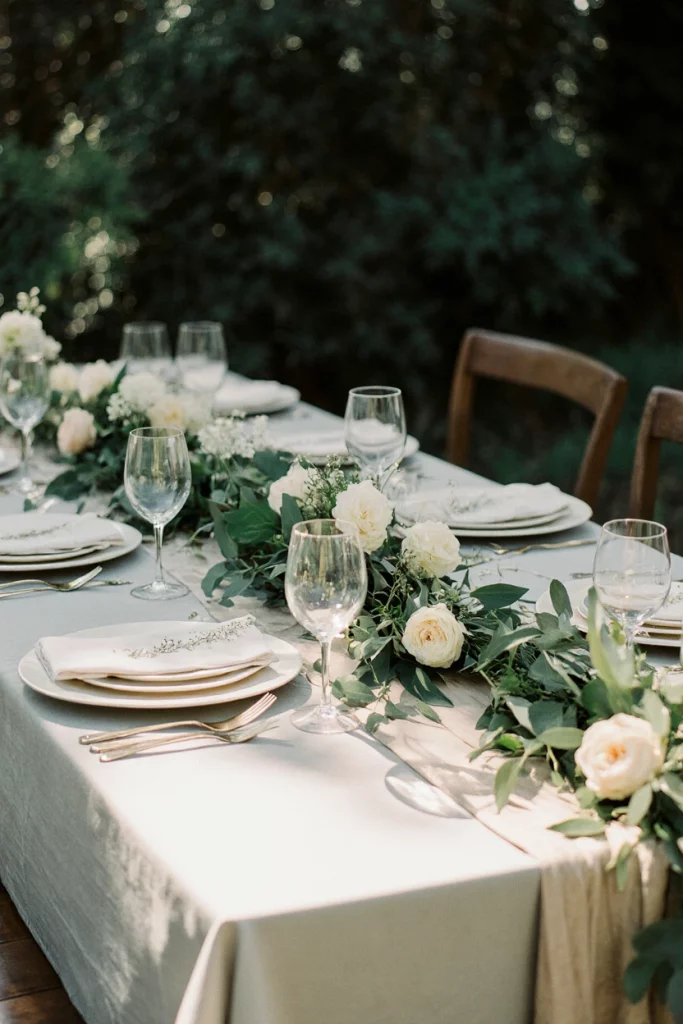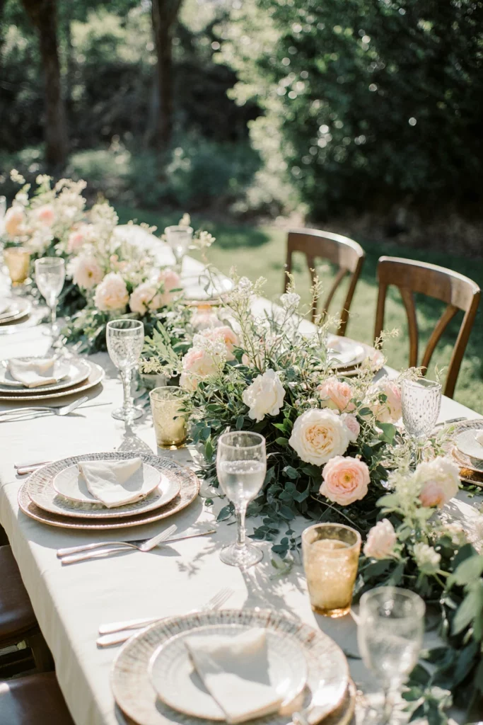 Garden receptions are leaning natural for Outdoor Table Decor 2026. Soft greenery, fine linens, and delicate fillers add romance to wedding settings. Neutral palettes pair beautifully with white accents and spring florals without overpowering the overall composition.