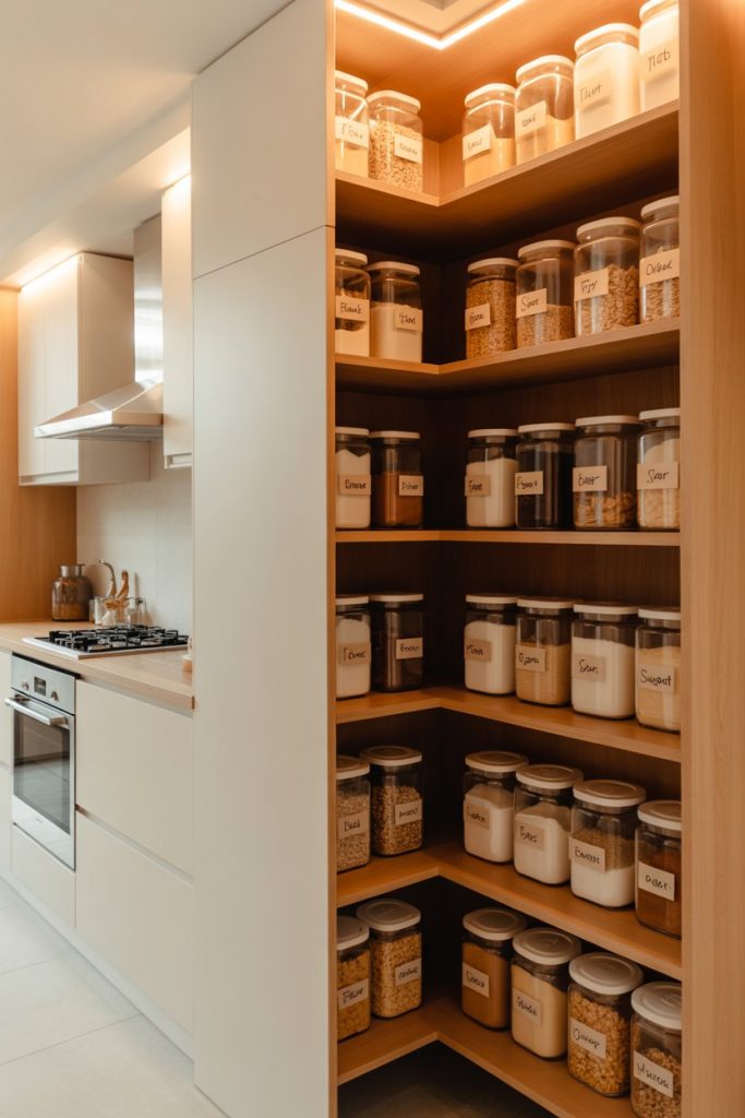 Pantry Design 2026 with modern luxury storage ideas for walk in, small kitchen and corner spaces
