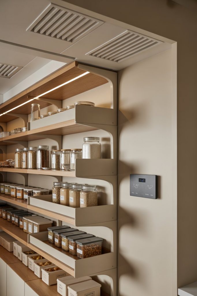 A dedicated dry goods pantry with temperature stability is ideal for homeowners who cook often or buy in bulk. This idea suits large homes and culinary enthusiasts who want ingredients to stay fresh longer. Shelving is arranged to keep airflow consistent, making it a favorite among food bloggers and home chefs.
