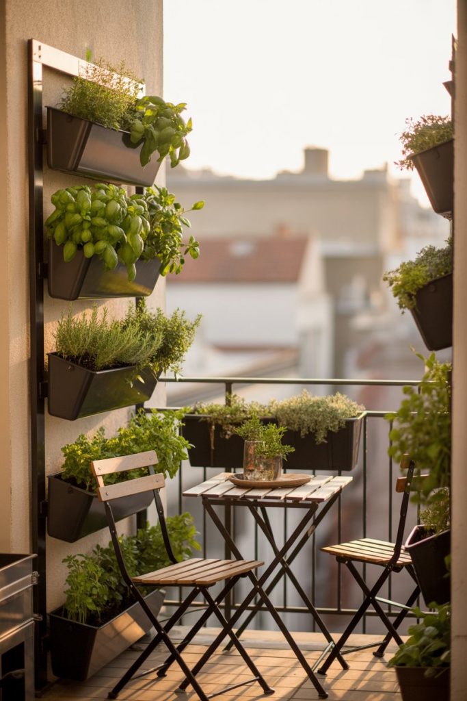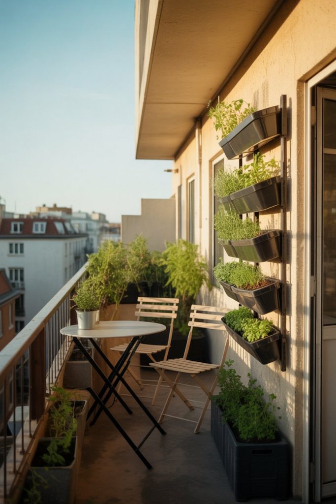 Maximize limited apartment balcony space with vertical planters, wall-mounted pockets, or tiered shelving units. Grow herbs, lettuces, and compact flowers in these vertical systems. Pair with a small bistro set and a folding side table for morning coffee. This solution appeals to urban dwellers in high-rises from Chicago to Seattle who want greenery without sacrificing floor space.