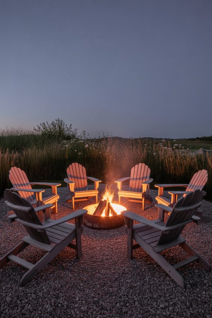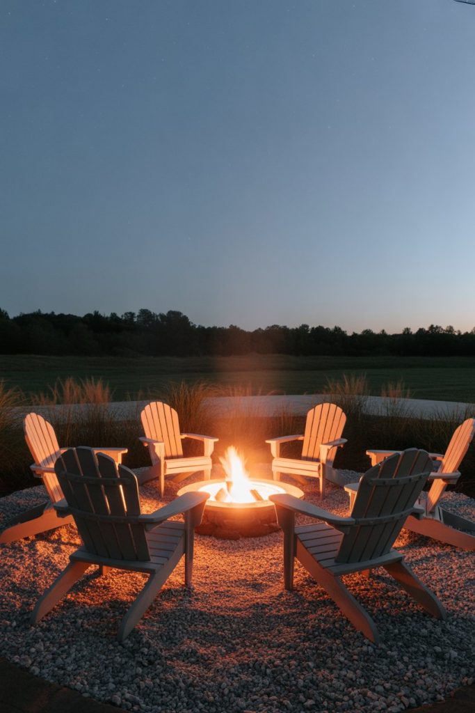Arrange Adirondack chairs or curved benches around a sunken fire pit to create a cozy back gathering spot that extends patio season into cooler months. Use pea gravel or decomposed granite for flooring, and plant low-maintenance native grasses around the perimeter. This setup thrives in Rocky Mountain and Pacific Northwest backyards where evenings cool down even in summer.