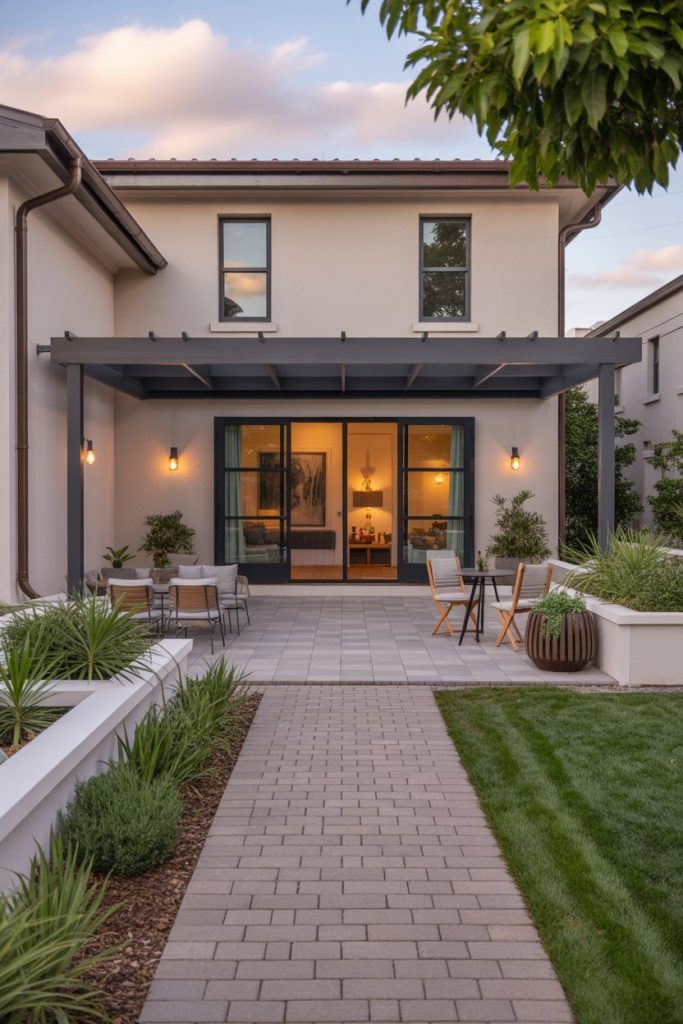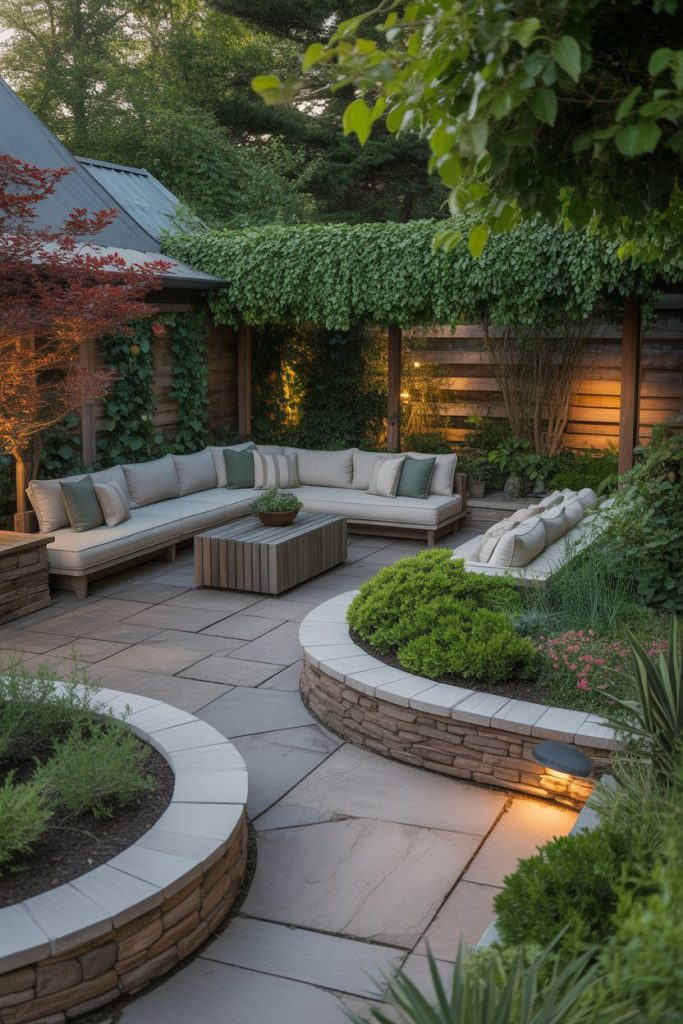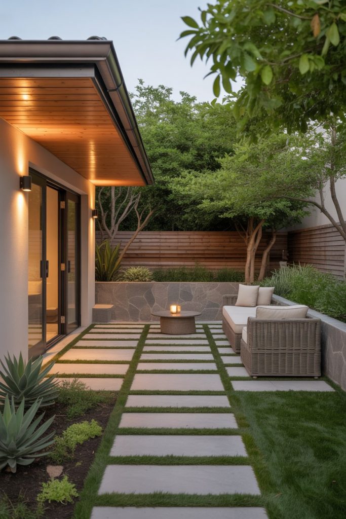 A stone path leading to a patio creates a cinematic, welcoming feel that homeowners love for both front and backyard entrances. In small backyard spaces, curved stone lines soften the geometry of fences and walls, helping the layout feel more fluid. Designers often recommend pairing stone with textured planters or accent lighting to mimic elegant restaurant garden terraces, adding charm without requiring major construction.