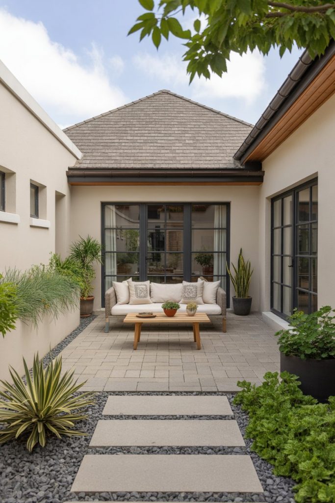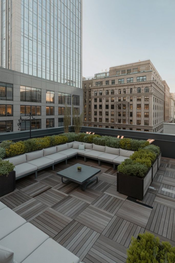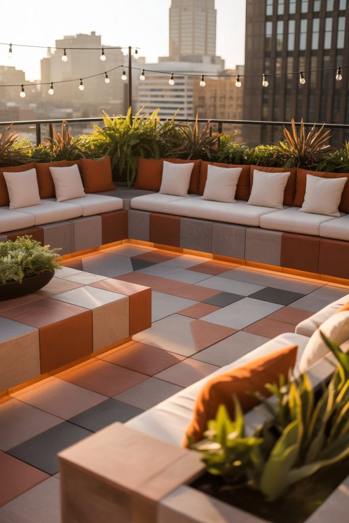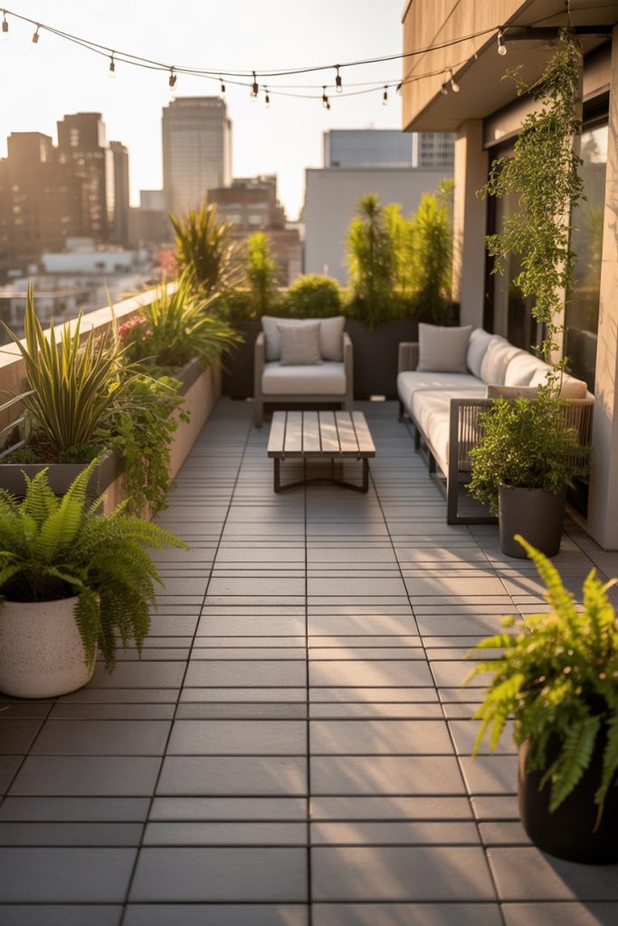 A rooftop patio built with modular paver flooring is perfect for compact urban homes where every square foot counts. This idea blends comfort with structural practicality, especially when homeowners choose lightweight furniture and a steady layout plan. It works well for terrace garden ideas, Indian rooftop styles, or simple modern decks. Designers love how pavers allow for subtle color variation, creating depth without overwhelming the visual field. For many people living in apartments, this becomes their most meaningful outdoor retreat.