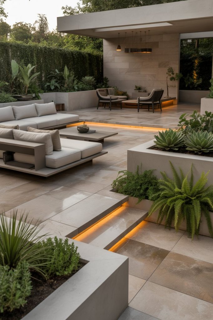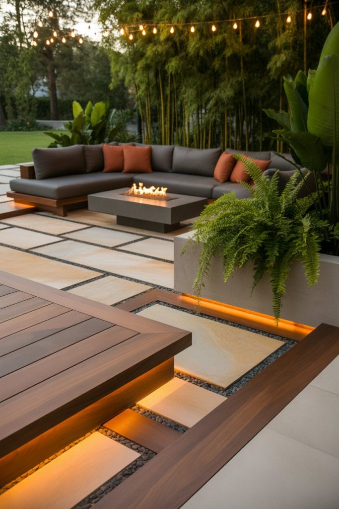 Patio Design 2026 ideas for modern backyard layouts with concrete pavers rooftop terraces and more