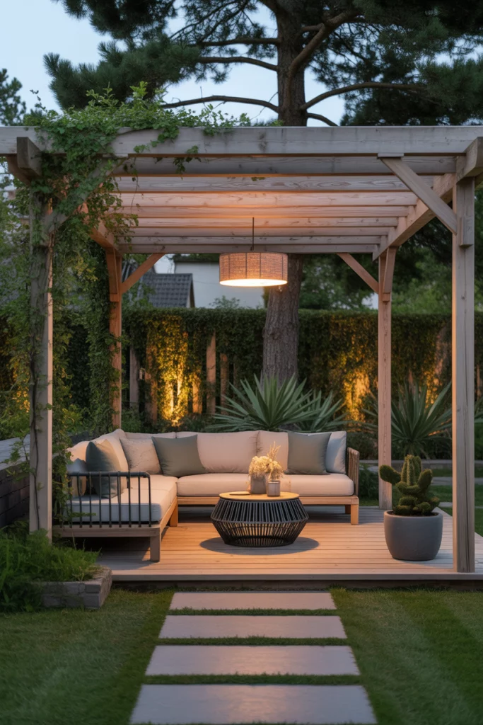 A pergola remains one of the most versatile structures for ideas for backyard upgrades, offering shade, style, and a modern architectural anchor. It helps define outdoor seating zones, whether over a dining table or a cozy reading corner. Pergolas work particularly well in gardens or back patios where climbing vines soften the structure. Many designers say this addition feels like blending nature and comfort, making even small backyard spaces appear more meaningful and intentionally planned.