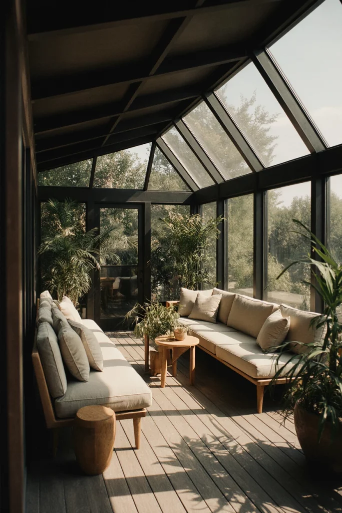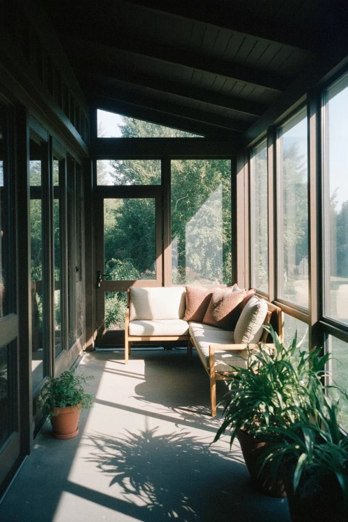 An enclosed porch offers a comfortable middle ground between indoor coziness and outdoor openness. It’s perfect for homes in cooler climates or windy regions, giving you a protected entrance with room for seating or plants. I’ve seen many families turn enclosed porches into morning coffee spots, using them almost like an extra living room.