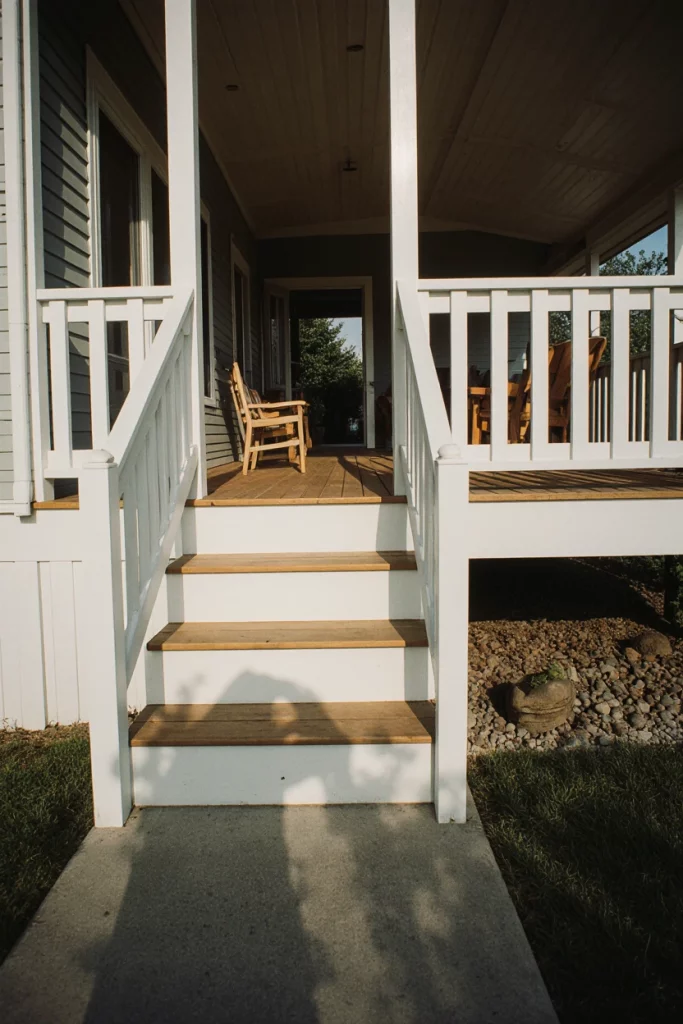 A mobile home porch extension adds function and charm to a modest structure. Homeowners often build these extensions to improve curb appeal and create a more welcoming front entry. I’ve walked past mobile home communities where simple wood builds made a huge difference in warmth and beauty.