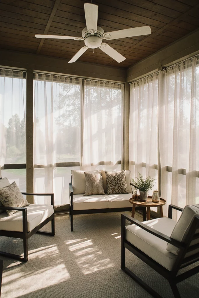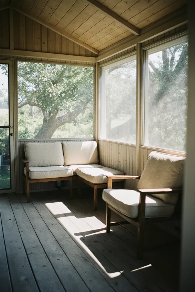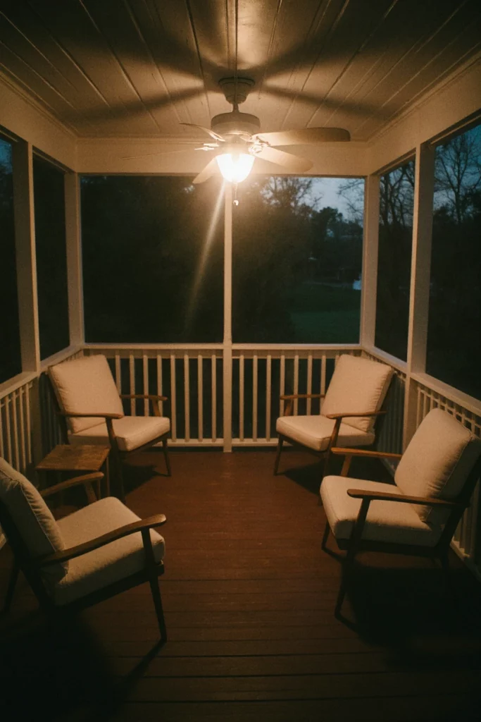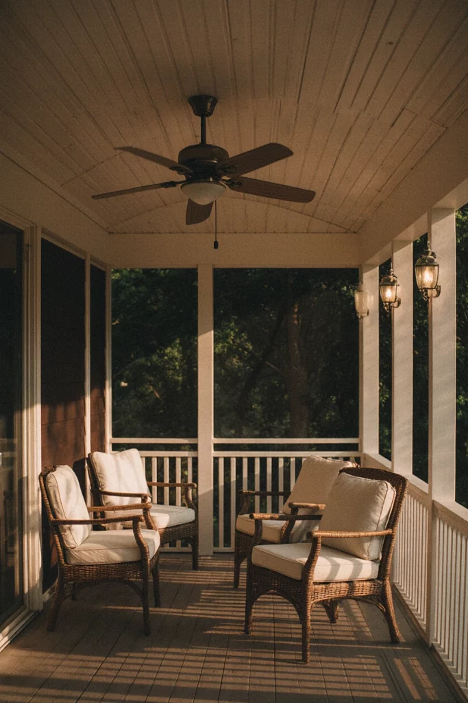 A screened back porch makes evening lounging more enjoyable, especially during mosquito-prone summers. Families often use these spaces for late-night chats or quiet reading. I’ve spent many evenings on screened porches feeling both protected and connected to nature.